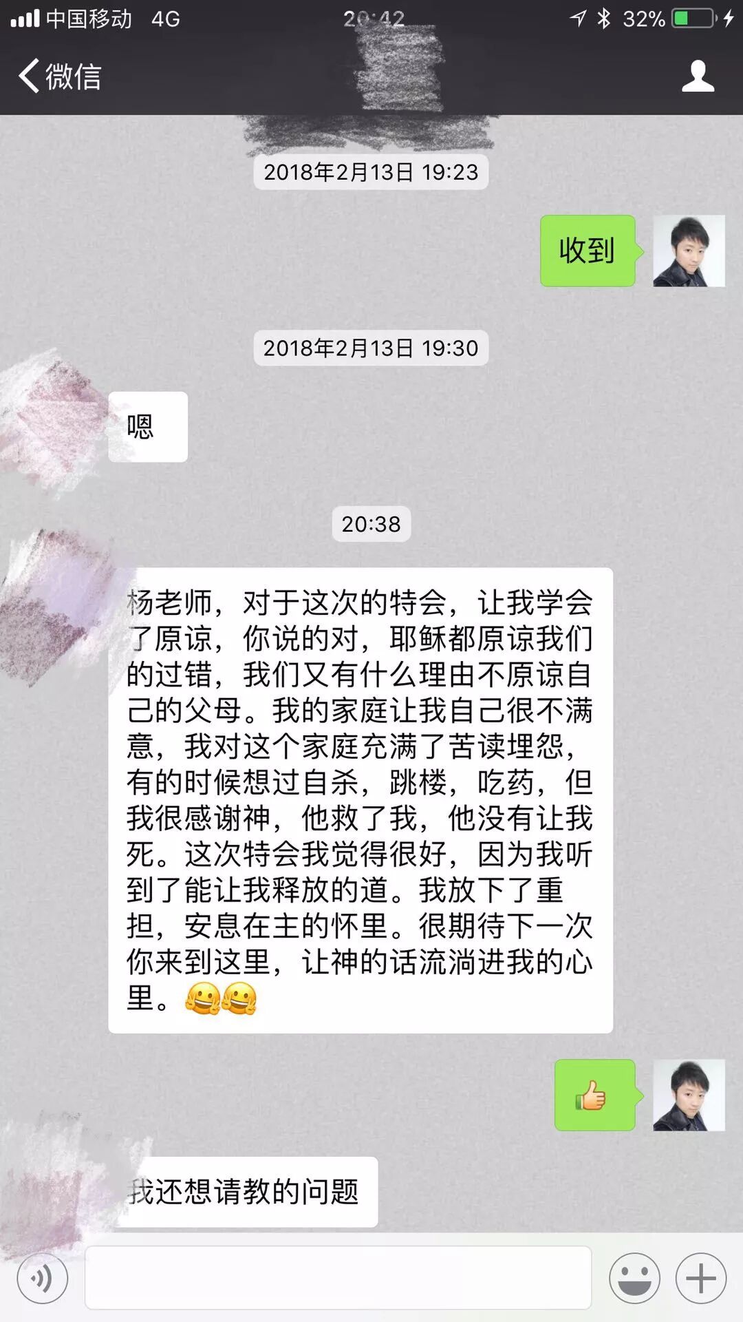 在回家的火车上,我不断收到孩子和家长们发来的见证,与每个家人共享。